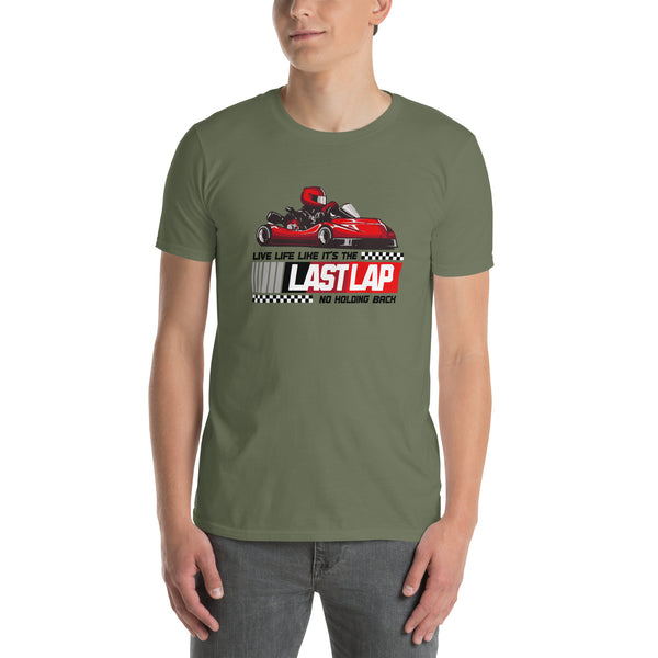 This Dirt Speedway Kart Racing "Last Lap" Short-Sleeve Unisex T-Shirt is made of 100% ring-spun cotton and is soft and comfy. The double stitching on the neckline and sleeves add more durability to what is sure to be a favorite!