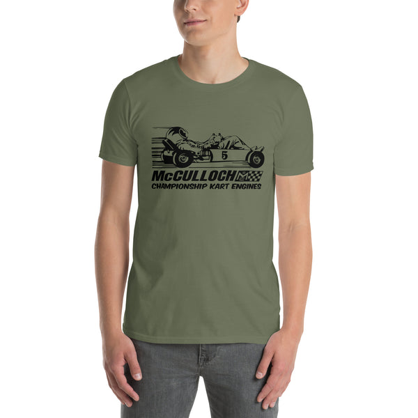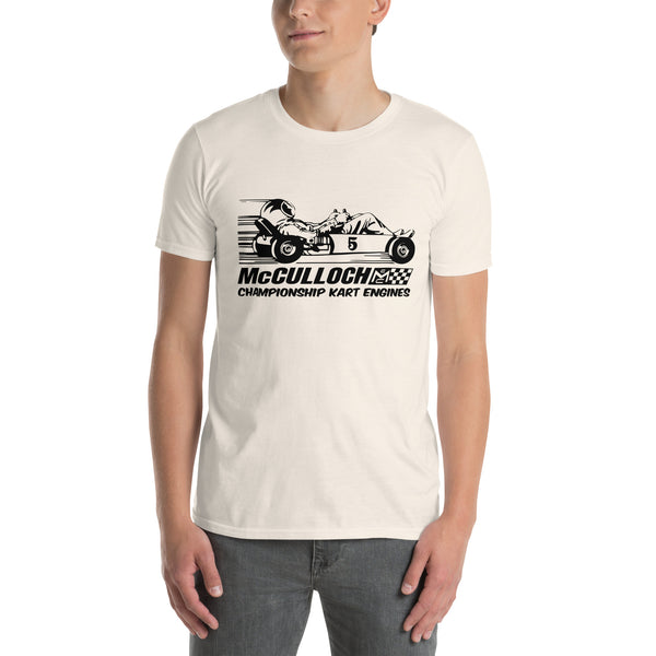 This Vintage Enduro McCulloch Championship Kart Racing Engines Short-Sleeve Unisex T-Shirt is made of 100% ring-spun cotton and is soft and comfy. The double stitching on the neckline and sleeves add more durability to what is sure to be a favorite!