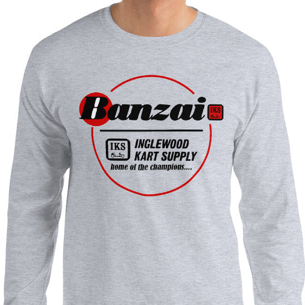 Vintage Karting Banzai Kart Inglewood Kart Supply Men’s Long Sleeve Shirt. Add this wardrobe essential to your track side collection.