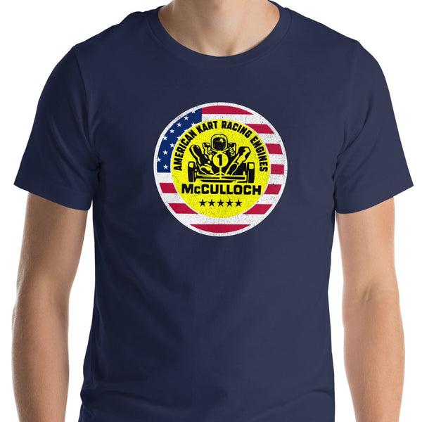 This Vintage Karting McCulloch American Racing Engines Worn Look Unisex T-shirt feels soft and lightweight, with the right amount of stretch. It's comfortable and great for the racetrack or bench racing in the garage.