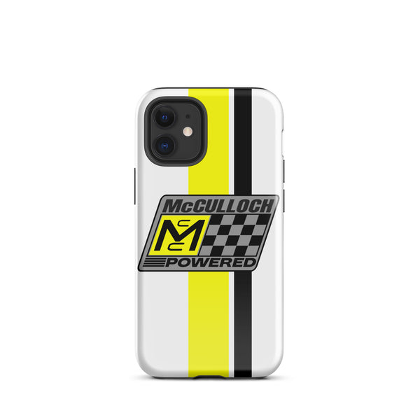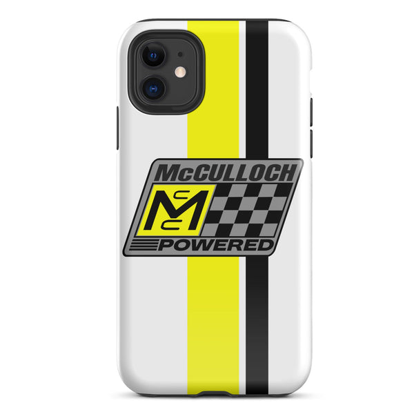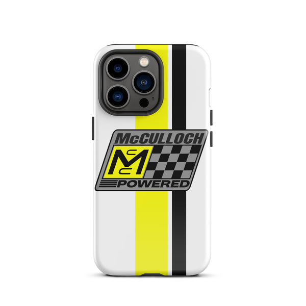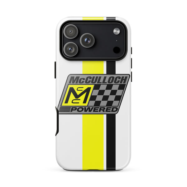 This Vintage Karting McCulloch Powered Tough Case for iPhone® protects your phone with style using a durable, dual-layered case. The outer shell is made of impact-resistant polycarbonate, while the inner lining sports TPU lining for maximum impact absorption. Keep your phone fashionable and safe all year round!