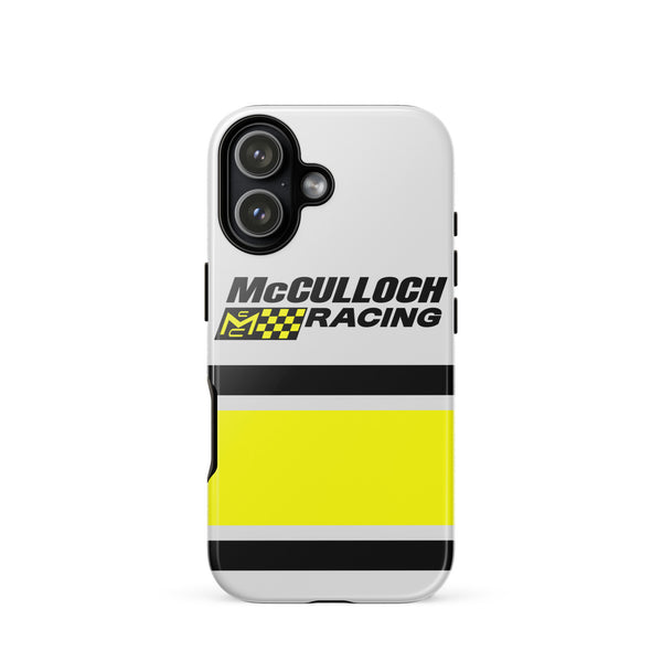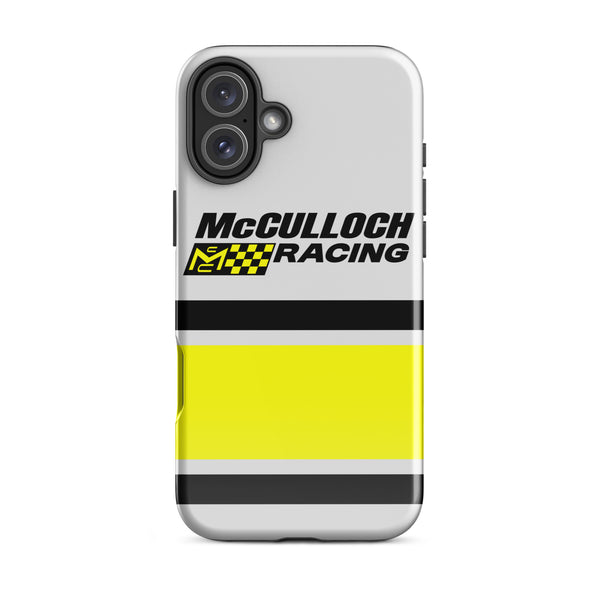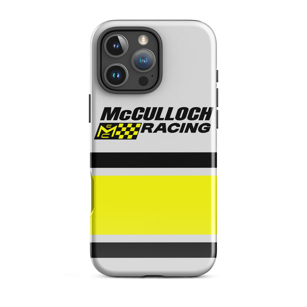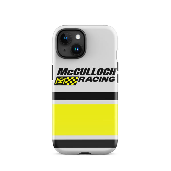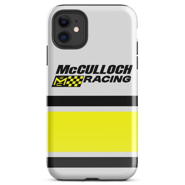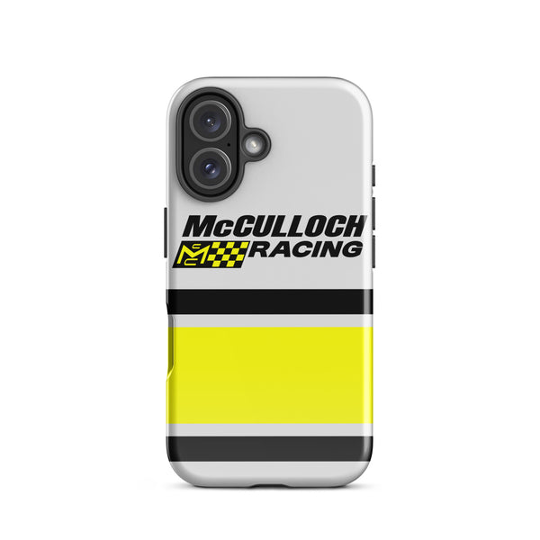 This Vintage Karting McCulloch Racing Tough Case for iPhone® protects your phone with style using a durable, dual-layered case. The outer shell is made of impact-resistant polycarbonate, while the inner lining sports TPU lining for maximum impact absorption. Keep your phone fashionable and safe all year round!